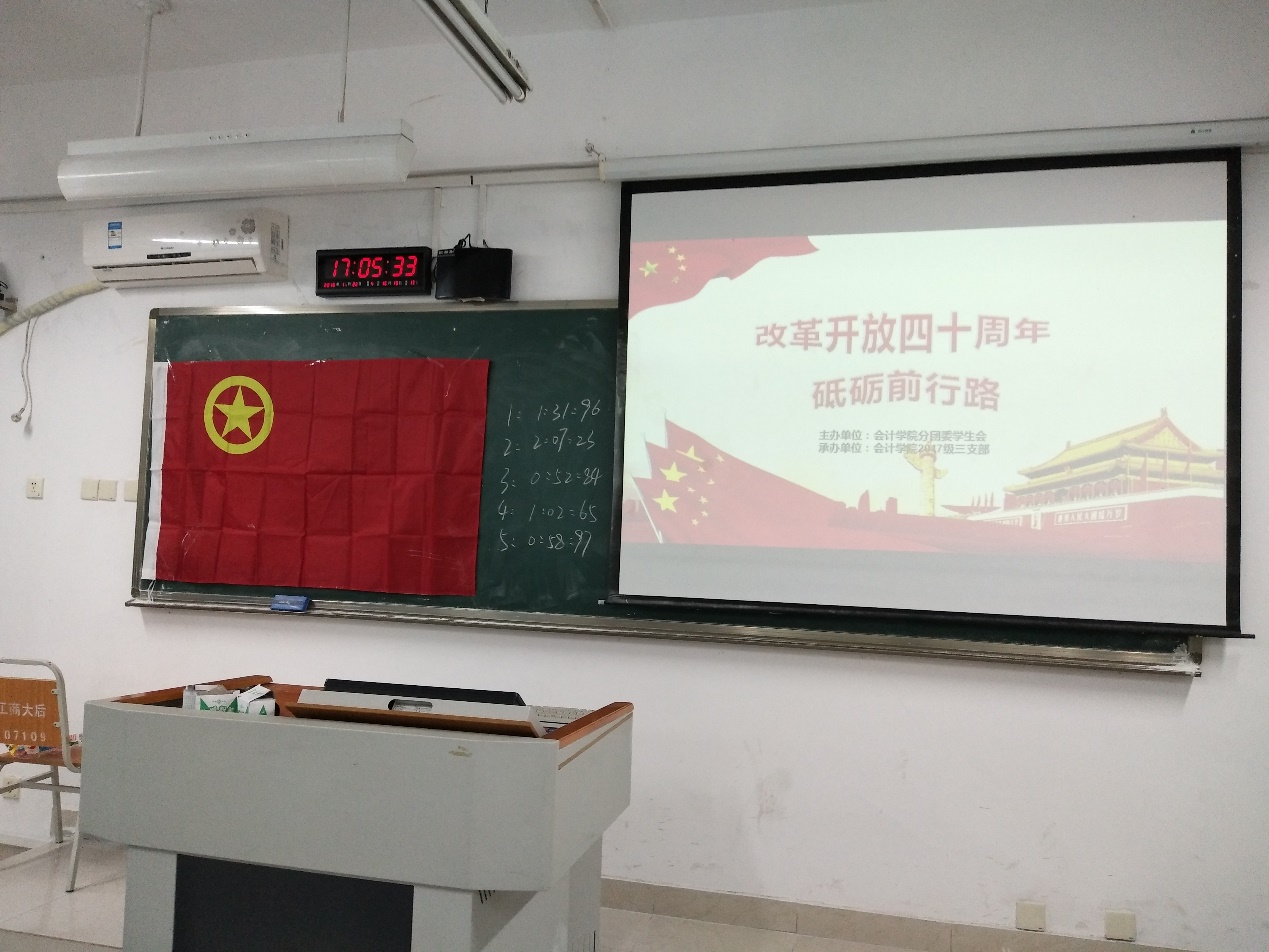在必赢国际437分团委学生会的组织和号召下,与必赢国际43717会计三支部共同在2018年10月22日于博智楼07109教室开展了主题为“改革开放四十年,喜迎中国新时代”的主题团日活动。本次团日活动旨在使团员了解近40年祖国发展历程和发展成果,并发表自己对于改革开放四十周年的认识和看法。