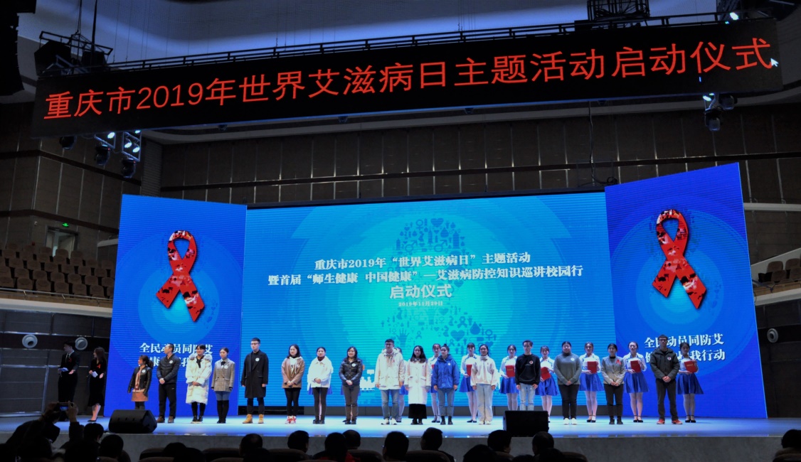 2019年11月29日,由重庆市卫生健康委、重庆市教委举办的“重庆市2019年“世界艾滋病日”主题活动暨首届“师生健康,中国健康”——艾滋病防控知识巡讲校园行启动仪式”在重庆医科大学缙云校区大礼堂顺利开展,必赢国际437向日葵义工志愿者协会在第四届“青年爱不艾”高校社团项目路演活动中荣获市级三等奖,彭文涛老师荣获市级优秀指导奖,因此受邀参与此次活动的防艾展演与受奖。