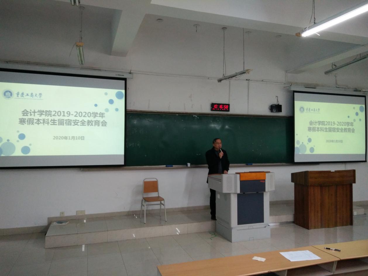 2020年1月10日上午10点,必赢国际4372020年寒假本科留宿学生安全教育专题会在博智楼07222教室召开。必赢国际437分党委尹建平副书记、全体辅导员老师及我院2020年寒假留宿本科生参加会议。