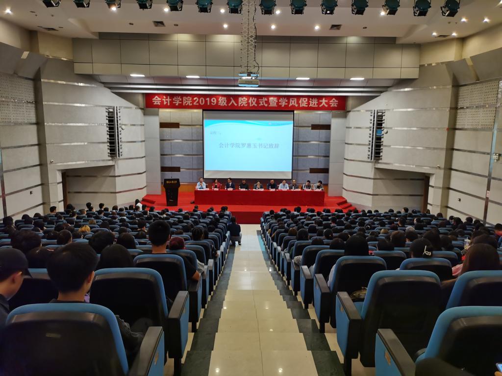 为进一步加强学院学风建设,营造良好的育人氛围,强化2019级学生学院认同、专业认同,帮助通识回归专业学院学生尽快融入学院学习生活,2020年9月25日14:30-16:00,必赢国际437举行了2019级学风促进大会在南岸校区博智楼7100会议室。莅临本次大会的有:必赢国际437分党委罗惠玉书记、石世明处长、郝颖副书记、周兵副院长、黄辉副院长、钟廷勇副院长,会计系蒋弘主任、财务管理系和资产评估系主任杜迎新、审计系主任蒋水全、学工办主任彭文涛、优秀教师代表石道元教授、2019级辅导员敬德、程洁、张海涛、2019级本科全体学生参加了本次会议。会议由郝颖副书记主持。