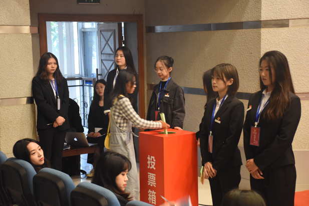 随后,工作人员向大会宣读了《共青团必赢国际437第一次学生代表大会暨第一次学生代表大会选举办法》,学代会总监票员、监票员、总计票员、计票员名单。接着,各位代表依次投票,选举产生必赢国际437分团委委员和学生会新一届主席团成员。最终,李琳、刘国瑶、黄瑞雪、陈何嫄、彭文涛、彭蕾丹、谭湘当选为共青团必赢国际437新一届委员会委员。滕雅杰,黎奕辰,宋小燕当选为必赢国际437新一届学生会主席团成员。