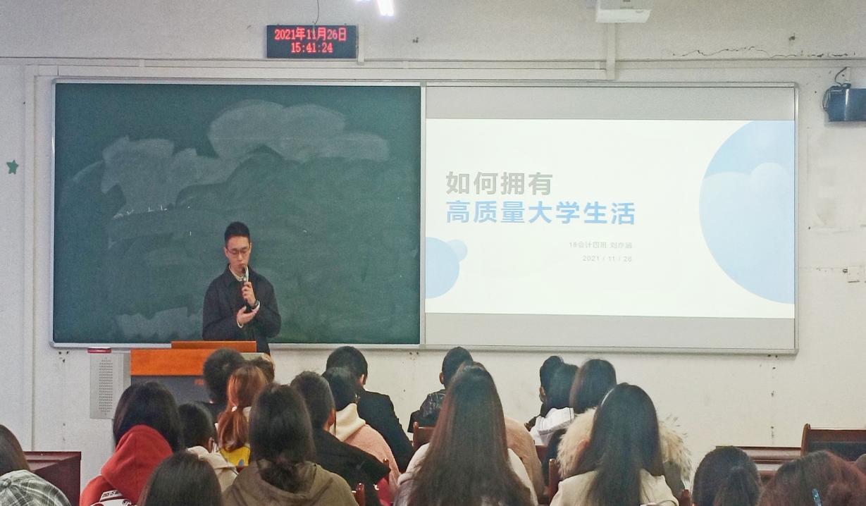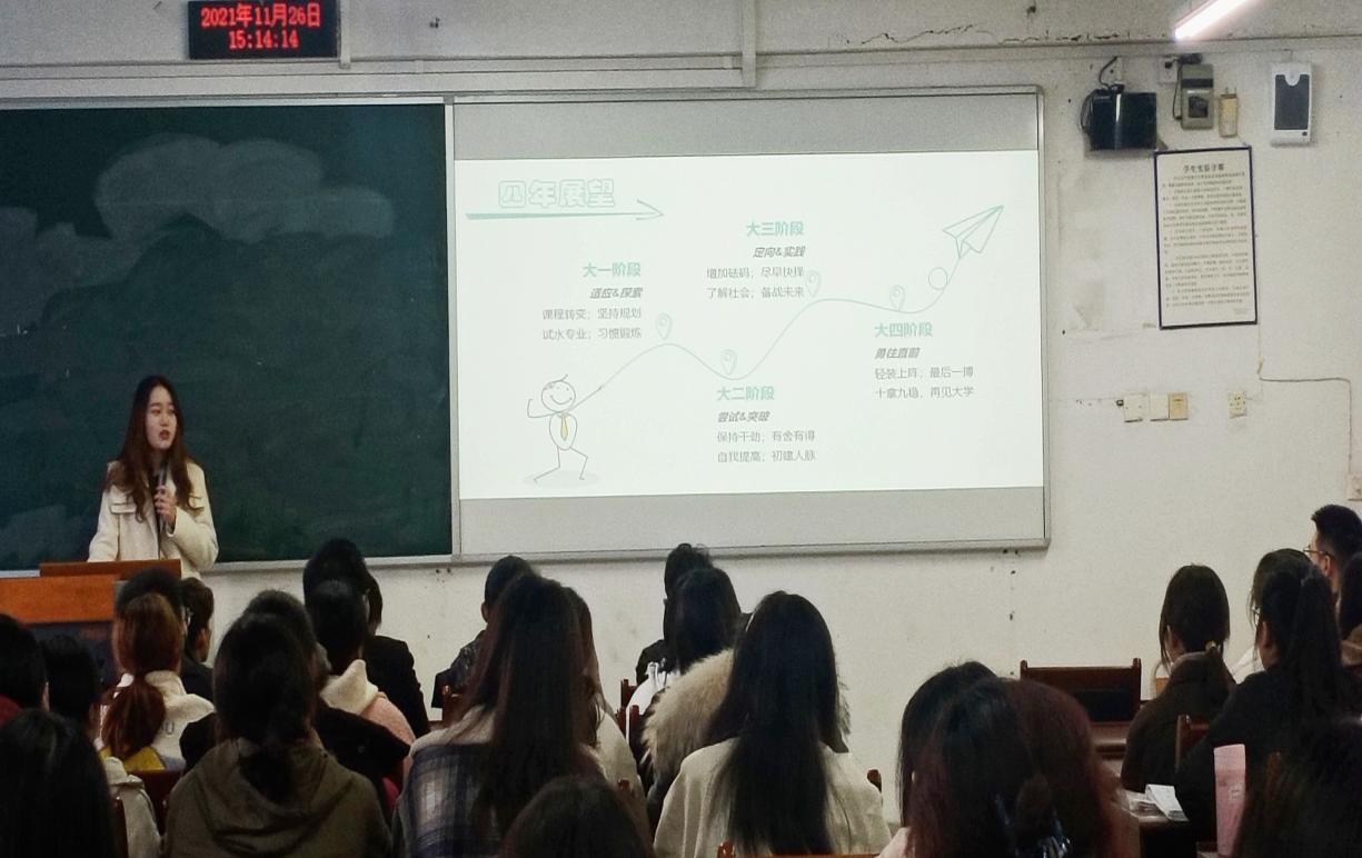 本次活动由今年获得国家奖学金的高悦洋和刘亦涵两位同学为大家进行大学生活分享交流,活动围绕“我的大学生活这样过”展开。