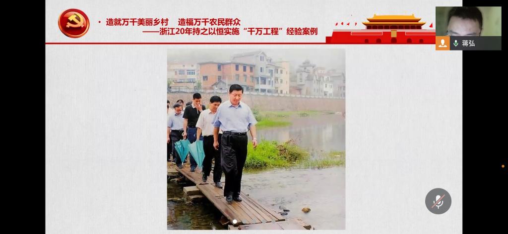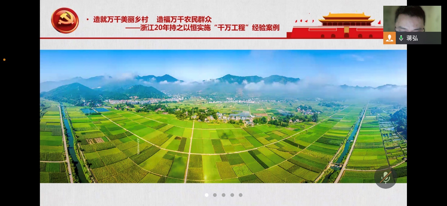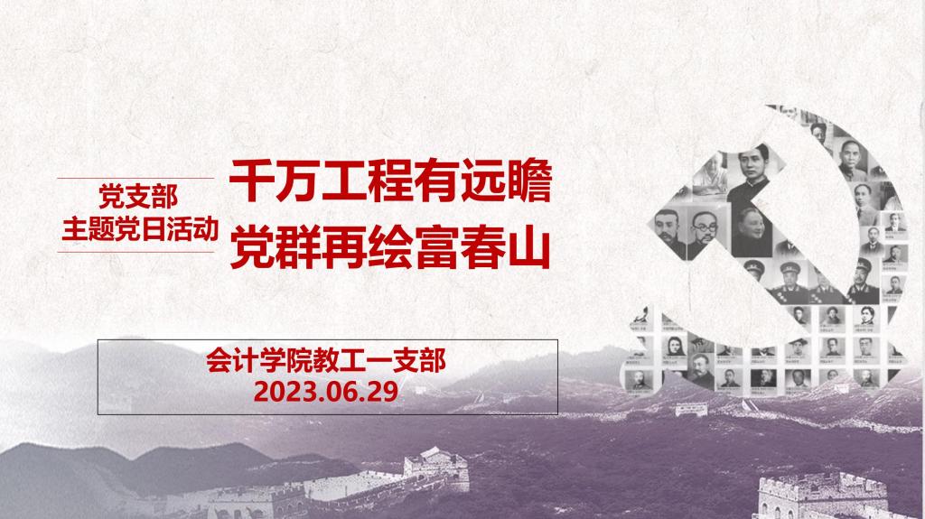 2023年6月29日,伴随学习贯彻习近平新时代中国特色社会主义思想主题教育的继续推进,教工一支部迎来了6月份的主题党日活动。本次活动的主题是“千万工程有远瞻,党群再绘富春山”。“千万工程”是一项具有远瞻性的,利在当代、功在千秋的工程,在实施“千万工程”的过程中,党带领人民群众再次描绘出了壮丽的《富春山居图》,这是活动主题的含义,也点明了当天学习的内容。本次活动由教工一支部书记蒋弘领学“造就万千美丽乡村 造福万千农民群众——浙江20年持之以恒实施‘千万工程’经验案例”。支部全体党员参加了活动。