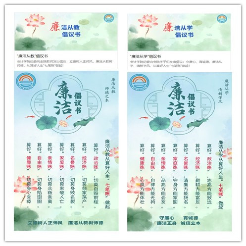 倡议书基于会计“记账”的工作特色,以算好政治账、经济账、名誉账、家庭账、亲情账、自由账和健康账等人生“七笔账”为主要内容,分别针对教师和学生发出,有力督促全院师生坚定“三不腐”原则,增强政治定力、纪律定力、道德定力和抵腐定力,清白做人、清廉做事,始终做到忠诚干净担当。